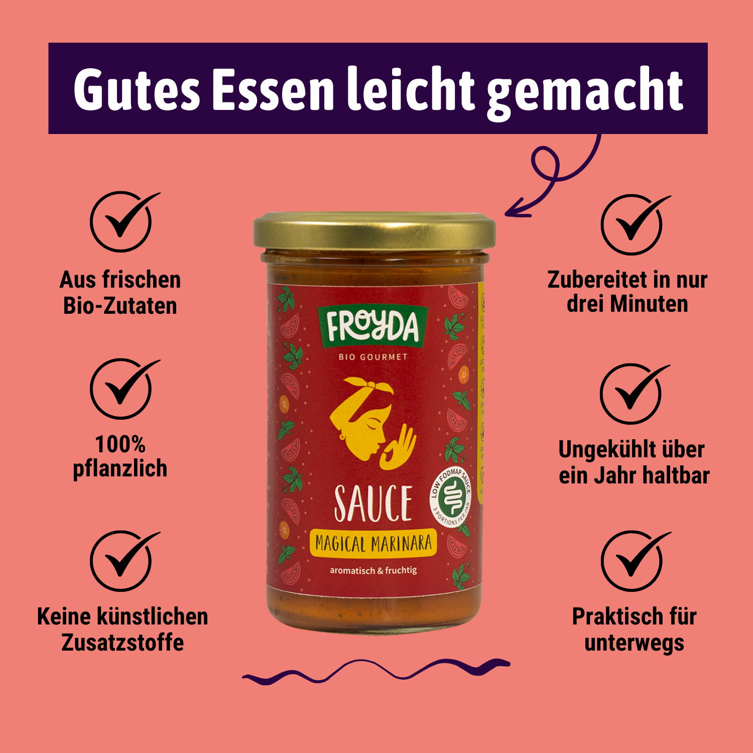 Ob zu Pasta- und Gemüsegerichten, auf Pizza, im Auflauf oder als Dip für herzhafte Snacks, mit der Froyda Magical Marinara Sauce holst du dir den Zauber von Bella Italia auf den Teller. Dein Gaumen und Bauch werden dir danken.