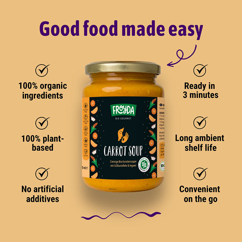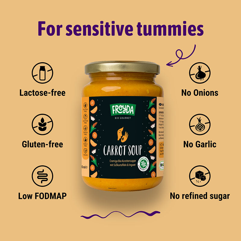 One jar of organic Carrot Soup contains one low FODMAP portion of 400 ml.
